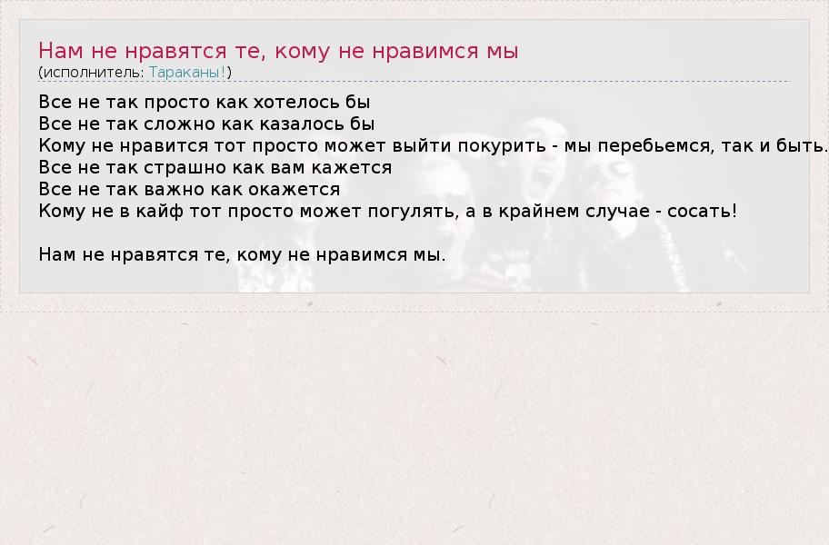 ГлавнаяИсполнителиТараканы!Нам не нравятся те, кому не нравимся мы