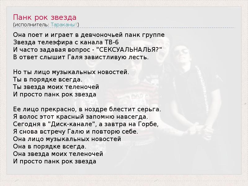 ГлавнаяИсполнителиТараканы!Панк рок звезда