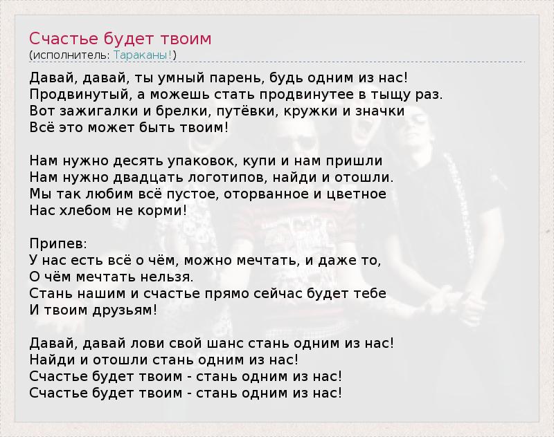 ГлавнаяИсполнителиТараканы!Счастье будет твоим