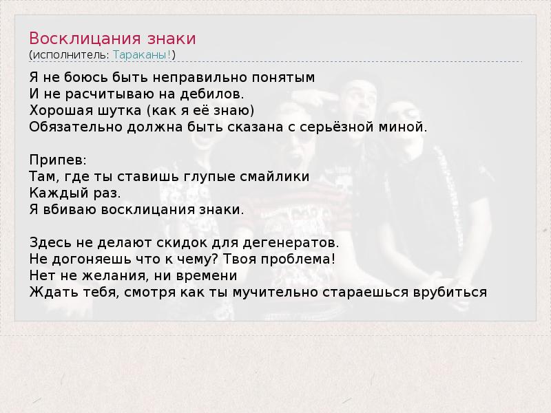 ГлавнаяИсполнителиТараканы!Восклицания знаки