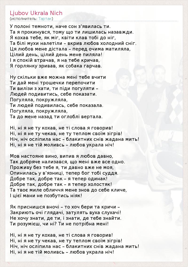 А как ты думаешь, о чем песня "Ljubov Ukrala Nich" ?