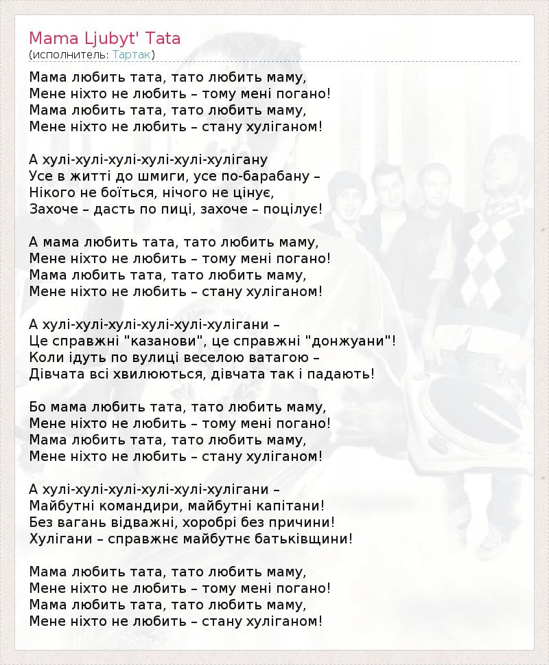 А как ты думаешь, о чем песня "Mama Ljubyt' Tata" ?