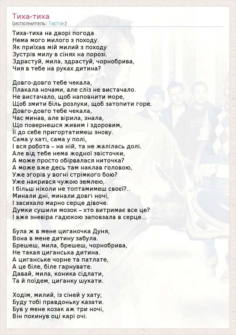 А как ты думаешь, о чем песня "Тиха-тиха" ?