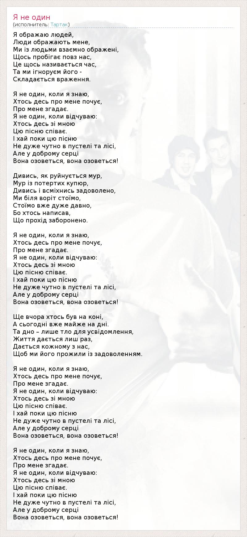 Это интересно:Точкой отсчёта истории группы Тартак является 1996-ой год. Именно тогда новосозданный проект принимает участие в отборочном туре фестиваля "Червона Рута", на котором, собственно, и побеждает. После презентации на фестивале песен "О-ля-ля", "Подаруй Мені Кохання" и "Божевільні Танці" Тартак становится лауреатом первой премии в жанре танцевальной музыки. В конце 1997-го... продолжение
