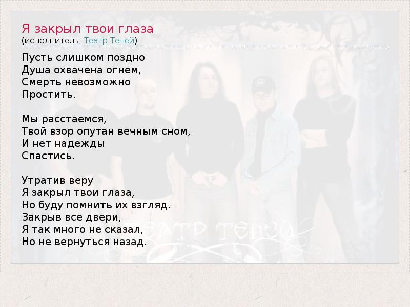 ГлавнаяИсполнителиТеатр ТенейЯ закрыл твои глаза