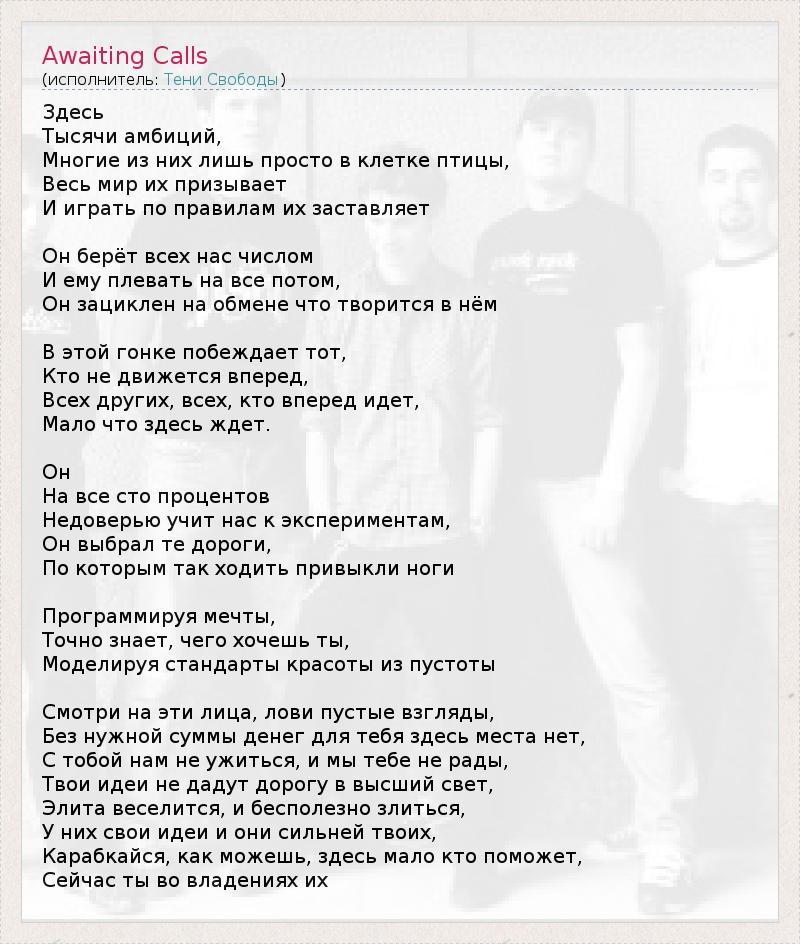 А как ты думаешь, о чем песня "Awaiting Calls" ?