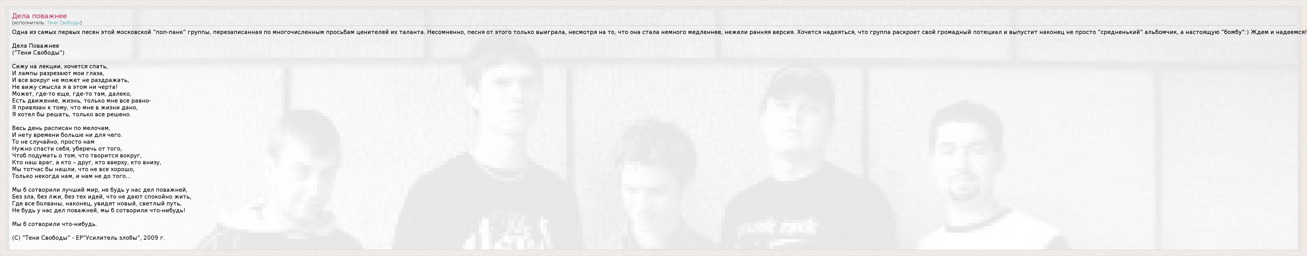 А как ты думаешь, о чем песня "Дела поважнее" ?