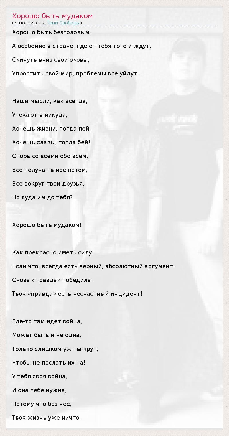ГлавнаяИсполнителиТени СвободыХорошо быть мудаком