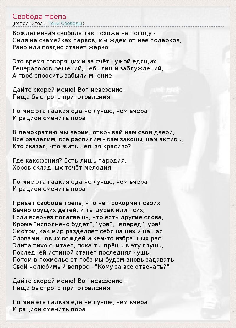 А как ты думаешь, о чем песня "Свобода трёпа" ?