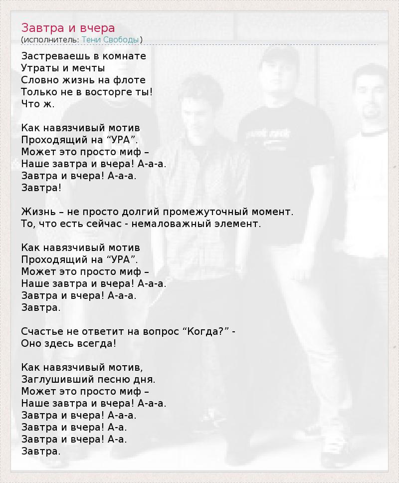 А как ты думаешь, о чем песня "Завтра и вчера" ?
