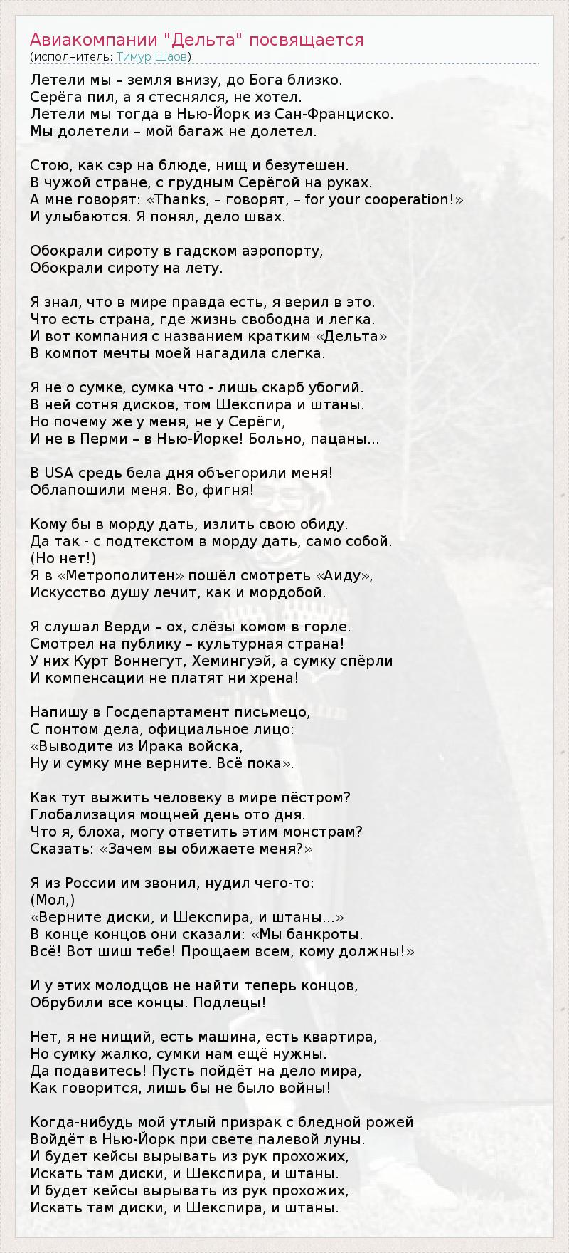 ГлавнаяИсполнителиТимур ШаовАвиакомпании "Дельта" посвящается
