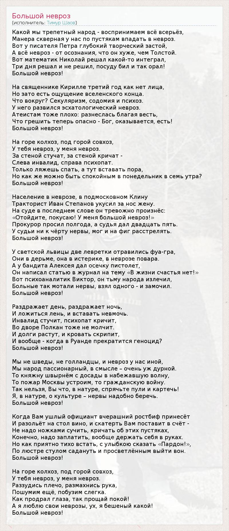 А как ты думаешь, о чем песня "Большой невроз" ?