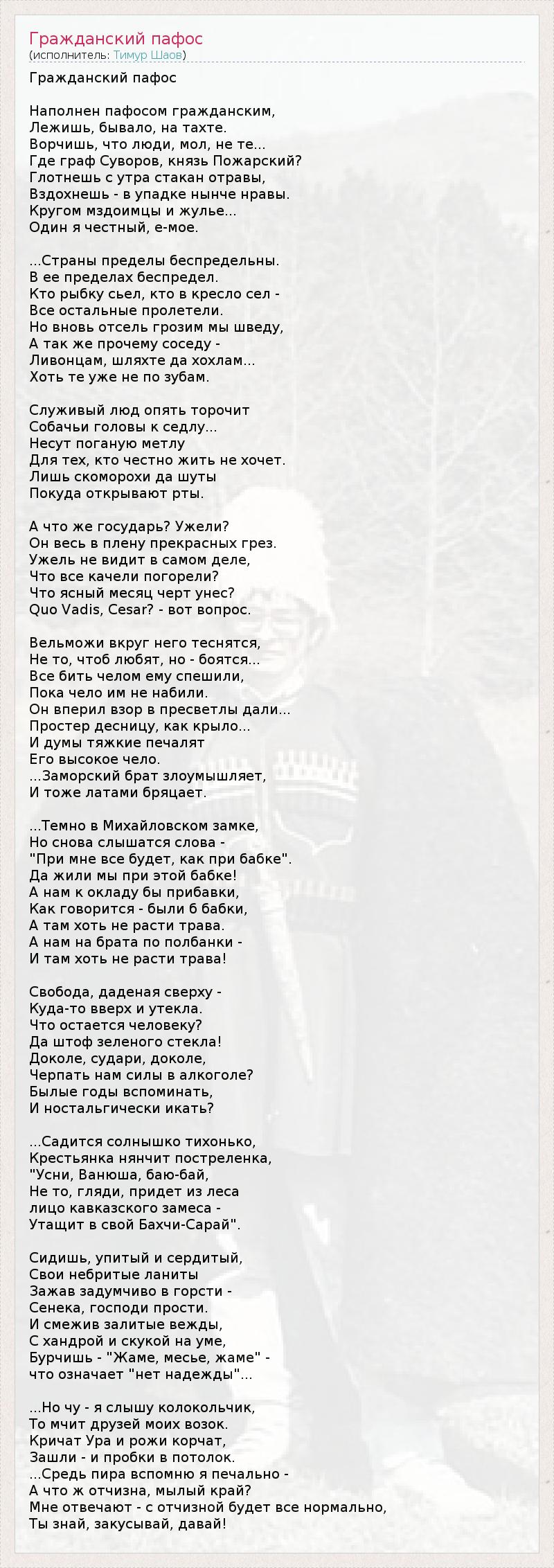 ГлавнаяИсполнителиТимур ШаовГражданский пафос