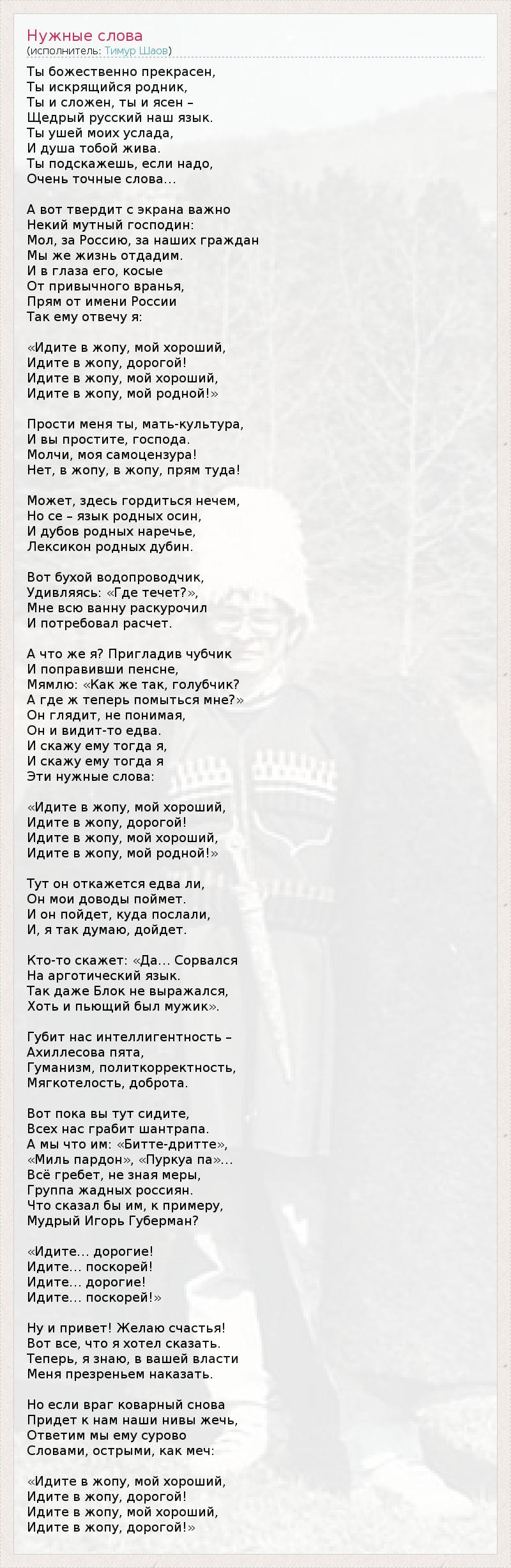 А как ты думаешь, о чем песня "Нужные слова" ?