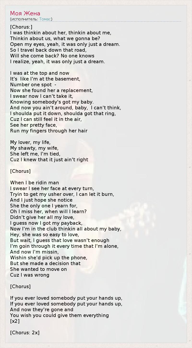 А как ты думаешь, о чем песня "Моя Жена" ?