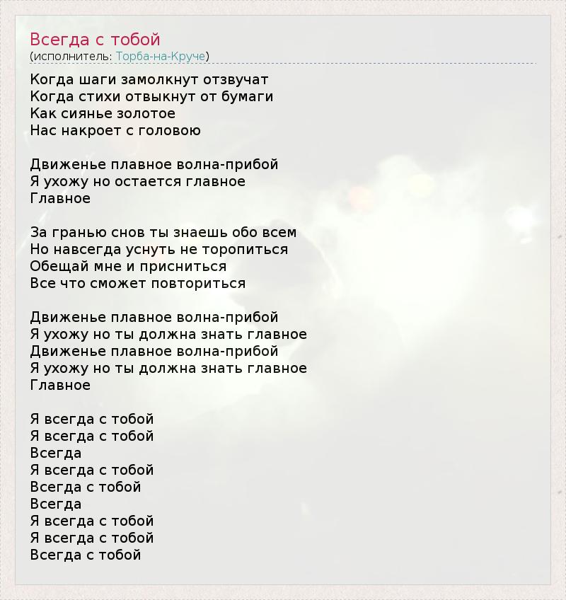 А как ты думаешь, о чем песня "Всегда с тобой" ?