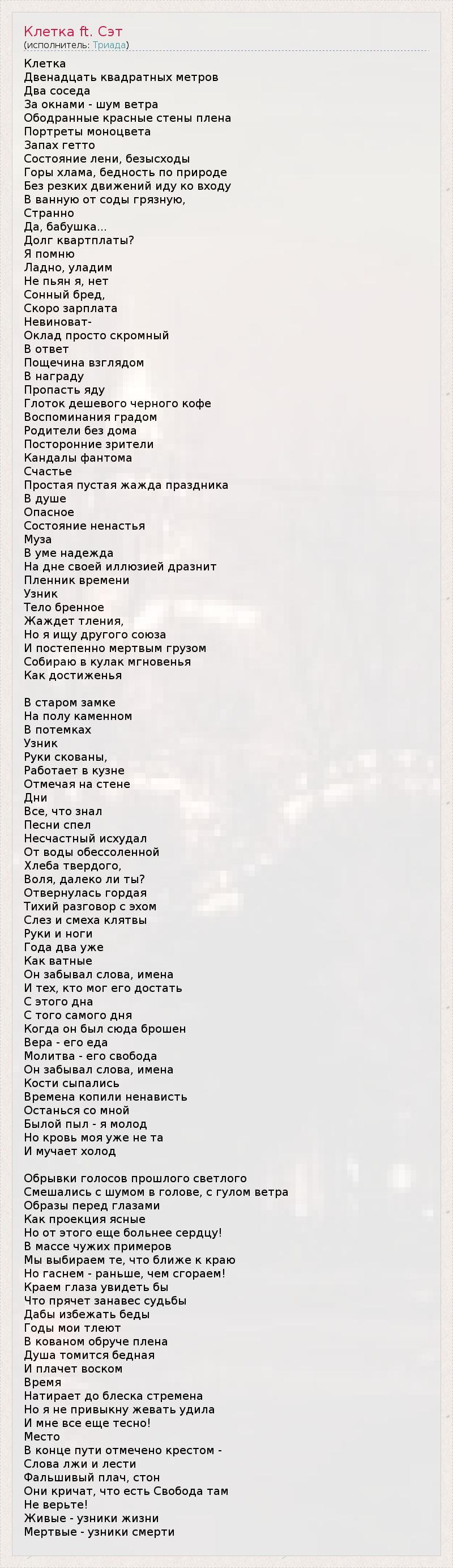 ГлавнаяИсполнителиТриадаКлетка ft. Сэт