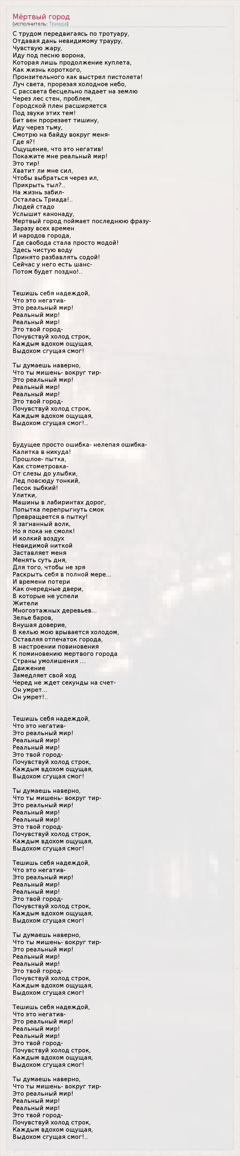 А как ты думаешь, о чем песня "Мёртвый город" ?