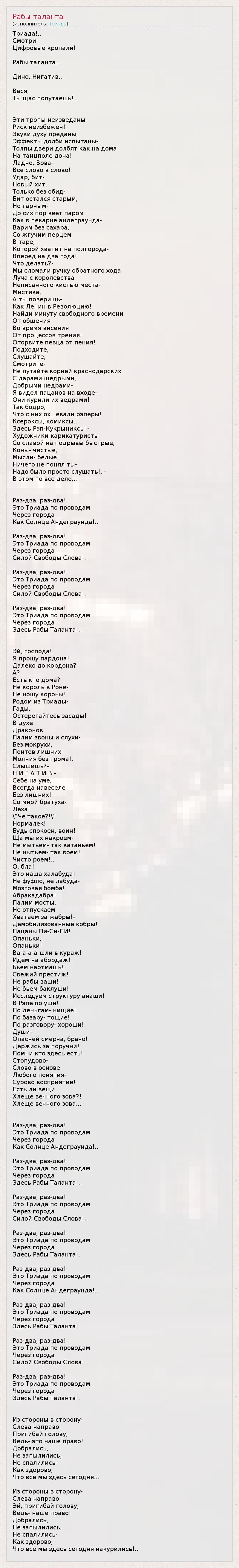 ГлавнаяИсполнителиТриадаРабы таланта
