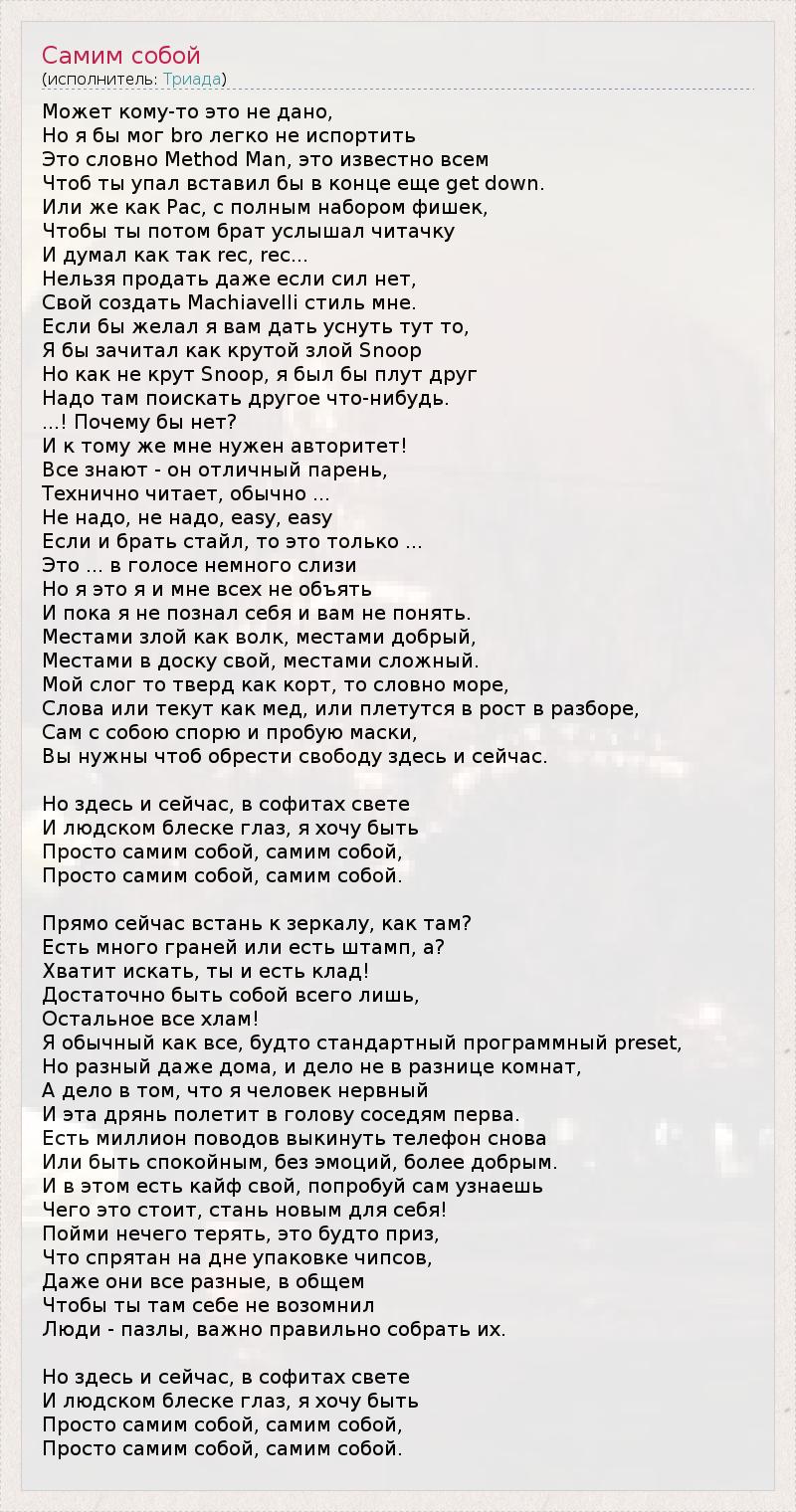 Это интересно:Состав: Дино, НигативГр. Триада образовалась в октябре 1999г, в составе Jazzz (Фёдор,Краснодар), Rico(Асватур, Ростов) Нигатив (Владимир, Краснодар).Название группы имеет несколько корней, это и китайское революционное движение, позже переродившееся в мафию, и обозначение тройственного союза (в социологии, например); Агиа Триада... продолжение