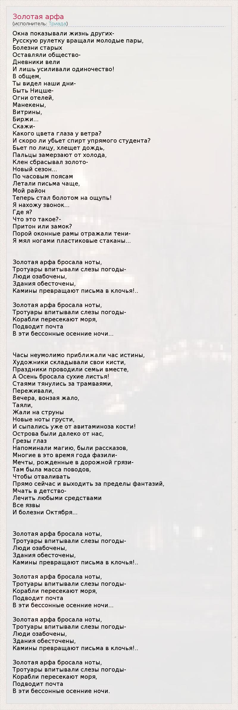 ГлавнаяИсполнителиТриадаЗолотая арфа