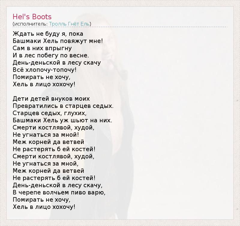 А как ты думаешь, о чем песня "Hel's Boots" ?