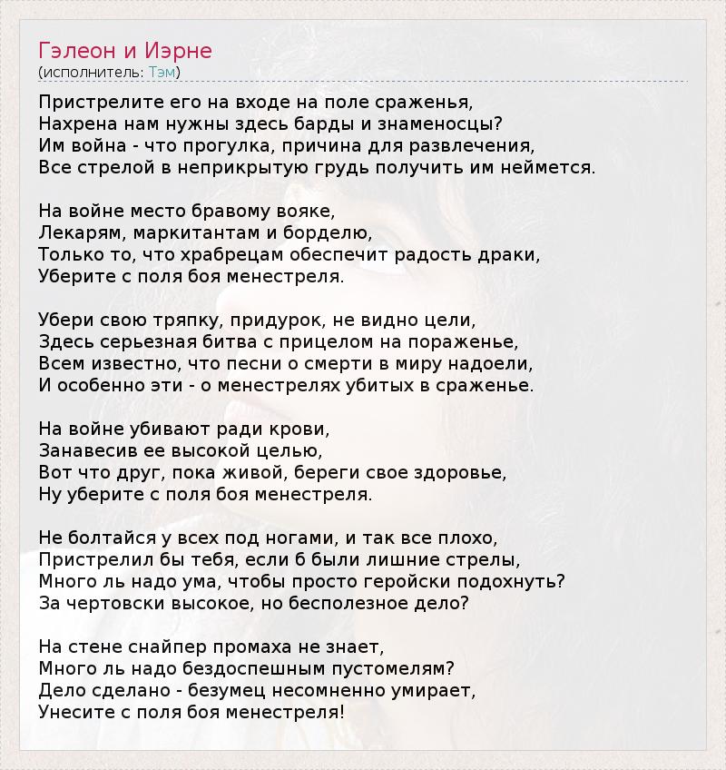 И особенно эти - о менестрелях убитых в сраженье.