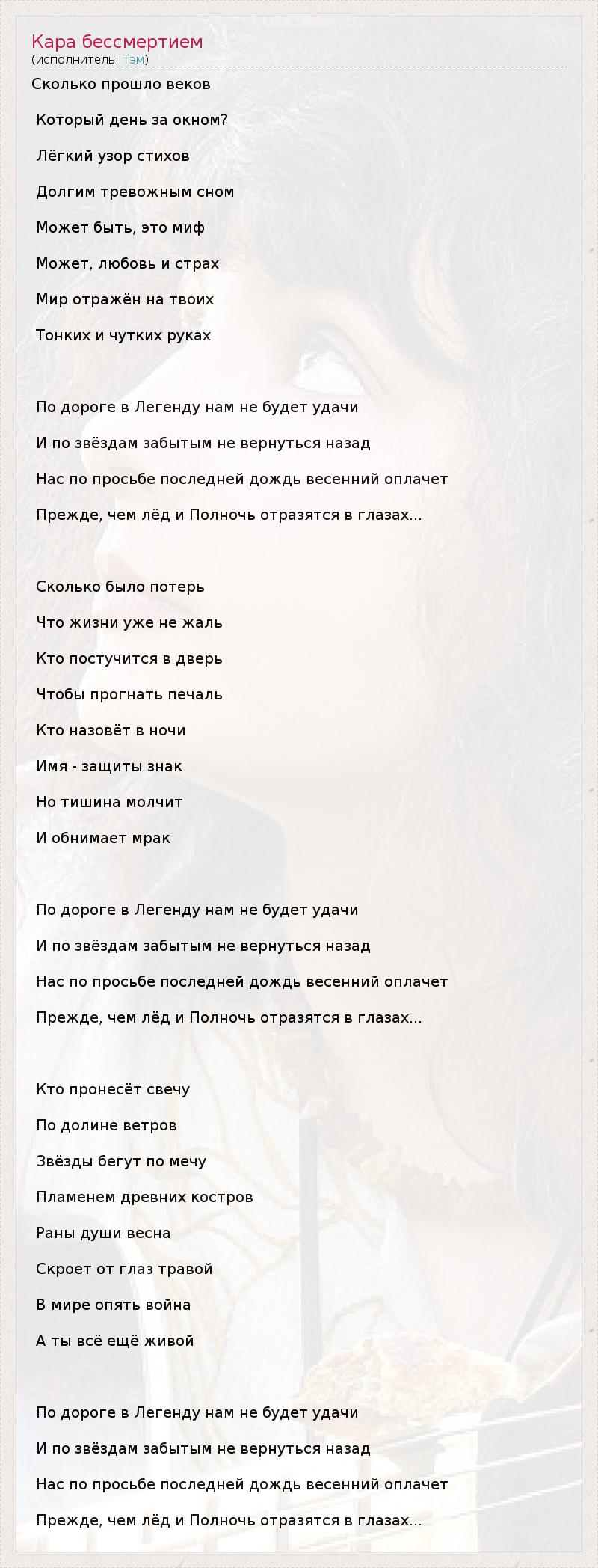 А как ты думаешь, о чем песня "Кара бессмертием" ?