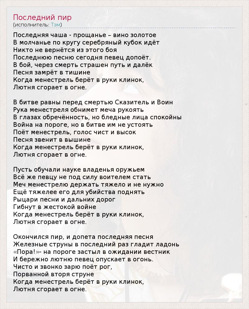 ГлавнаяИсполнителиТэмПоследний пир