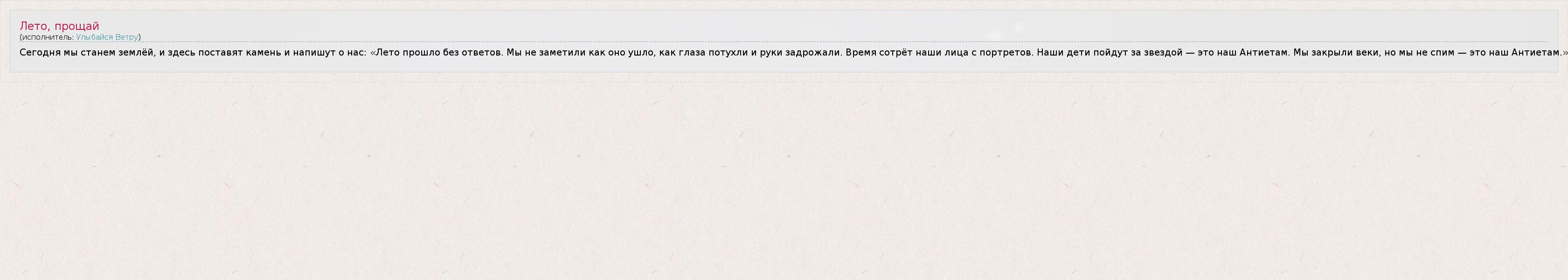 А как ты думаешь, о чем песня "Лето, прощай" ?