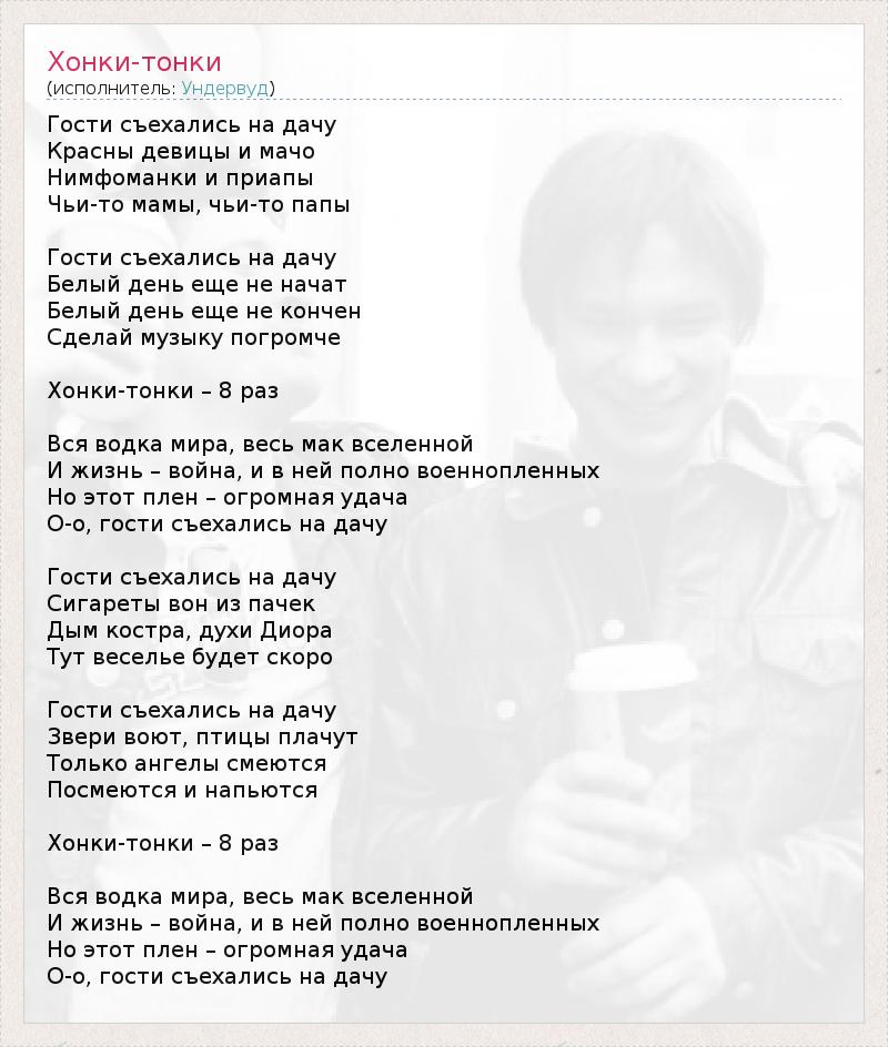 А как ты думаешь, о чем песня "Хонки-тонки" ?