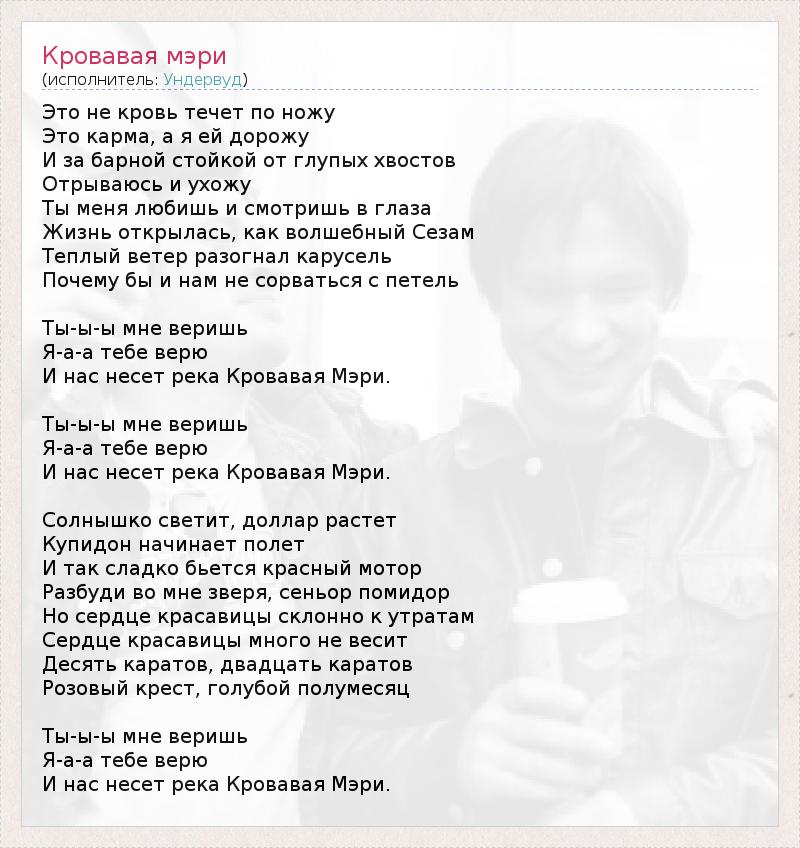 А как ты думаешь, о чем песня "Кровавая мэри" ?