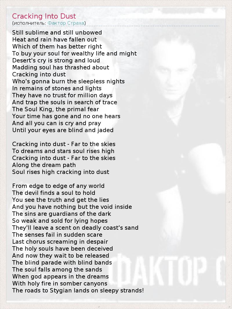 А как ты думаешь, о чем песня "Cracking Into Dust" ?