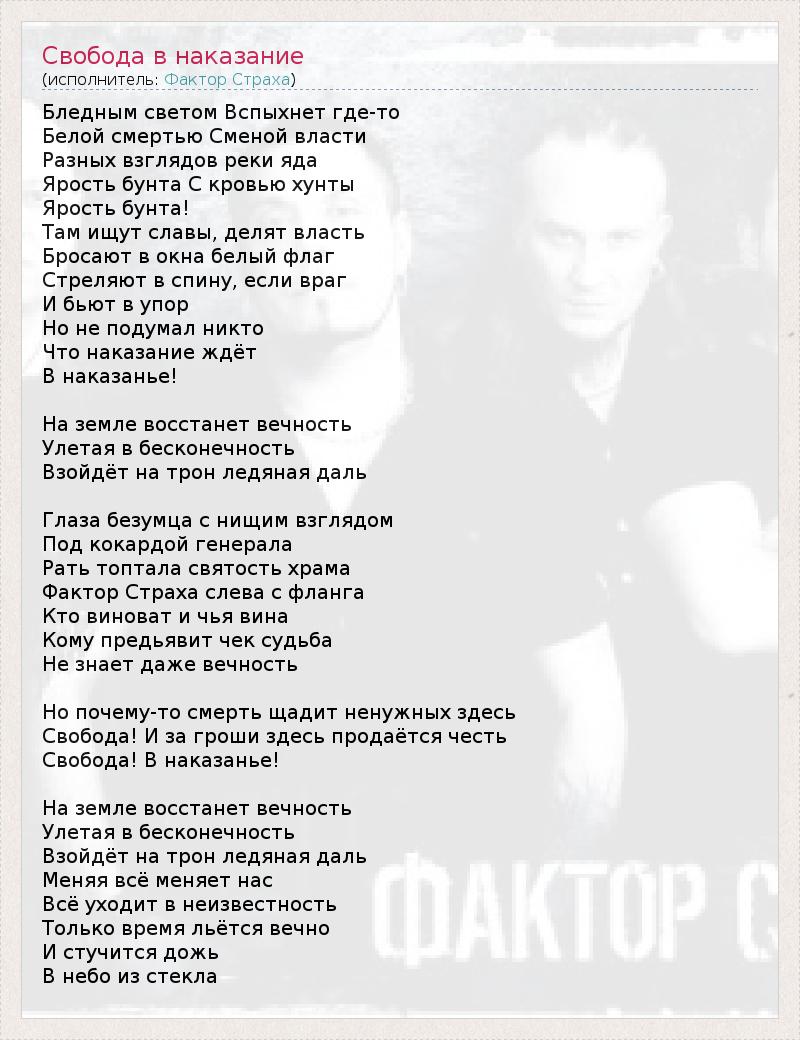 ГлавнаяИсполнителиФактор СтрахаСвобода в наказание