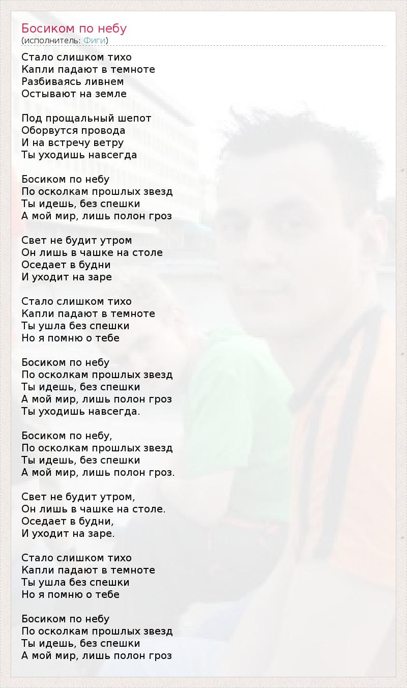 А как ты думаешь, о чем песня "Босиком по небу" ?