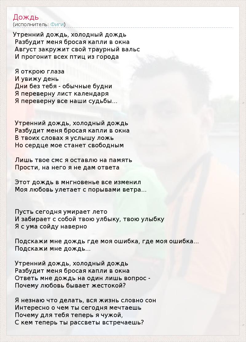 Подскажи мне дождь где моя ошибка, где моя ошибка...