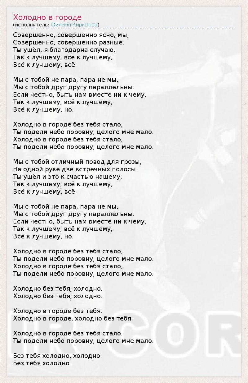 А как ты думаешь, о чем песня "Холодно в городе" ?
