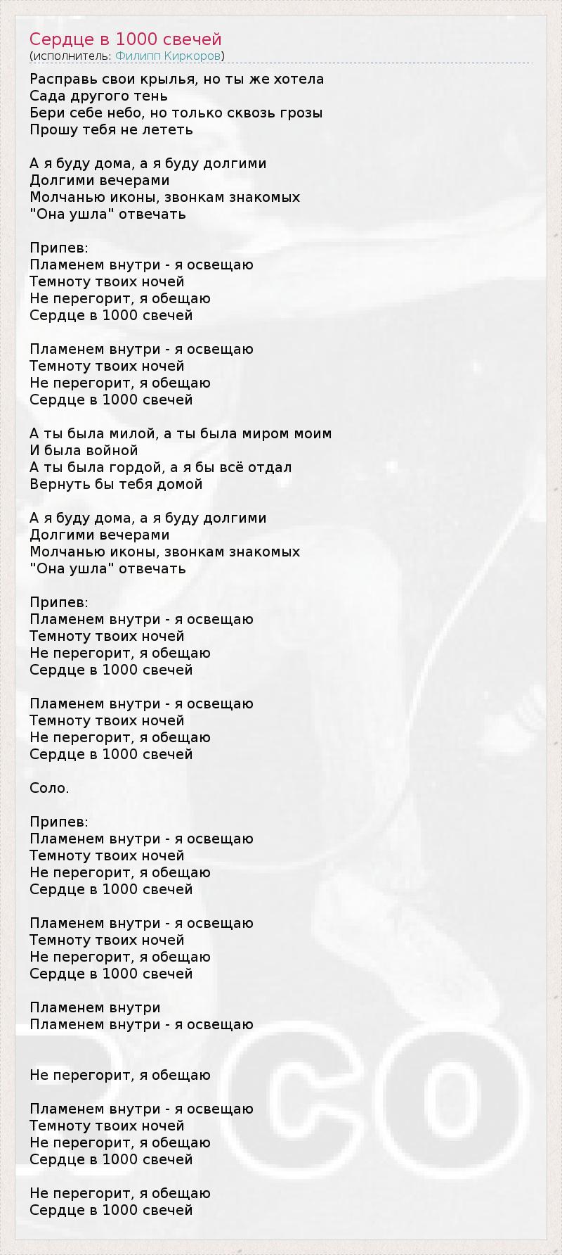 А как ты думаешь, о чем песня "Сердце в 1000 свечей" ?