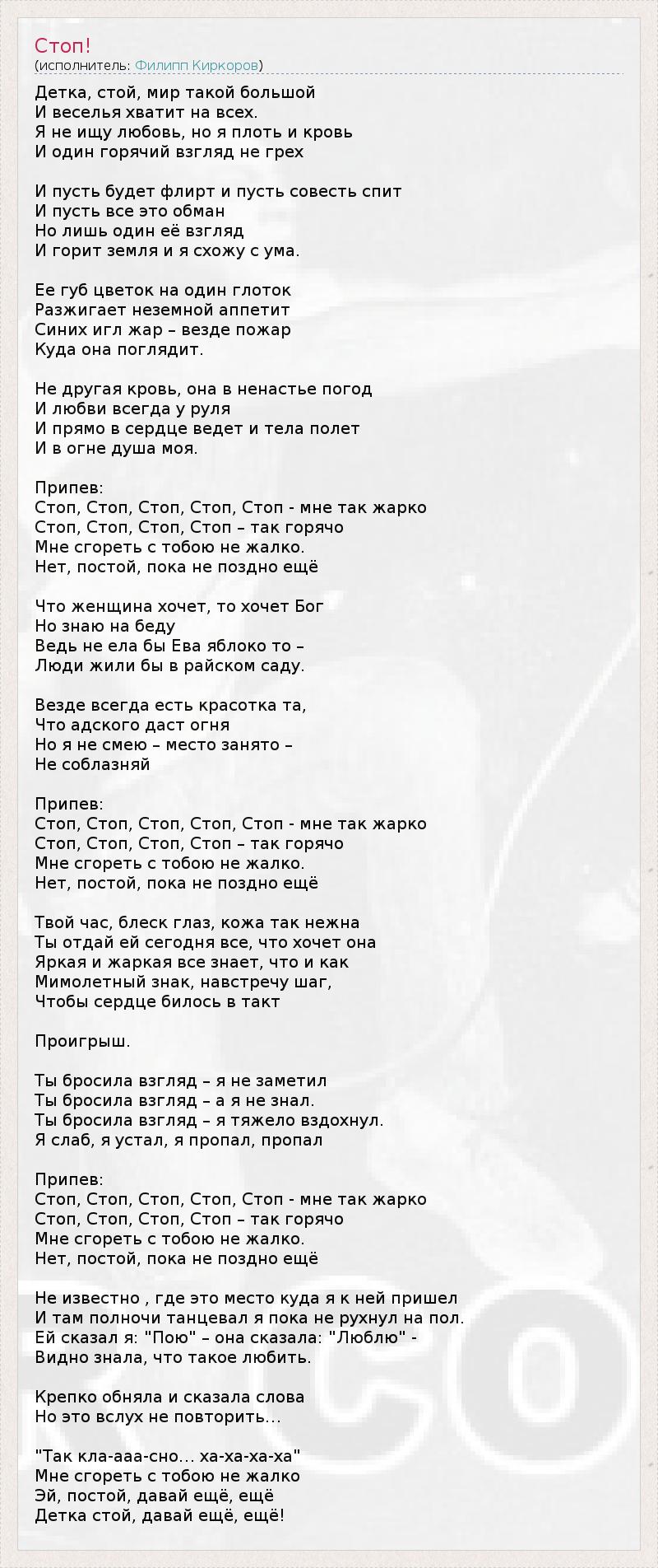 А как ты думаешь, о чем песня "Стоп!" ?