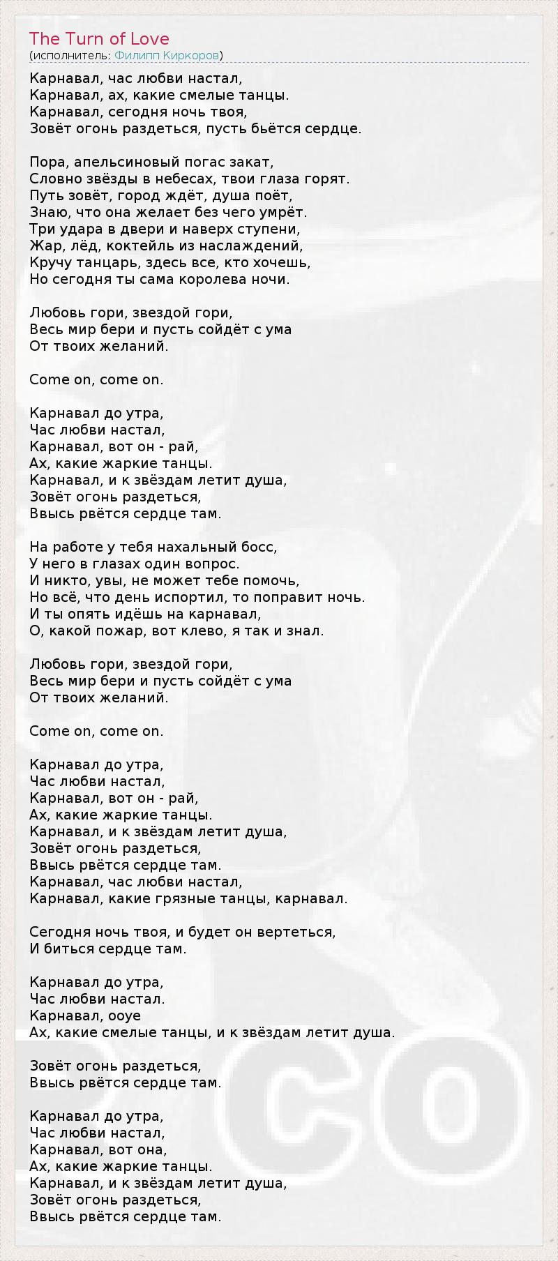 А как ты думаешь, о чем песня "The Turn of Love" ?