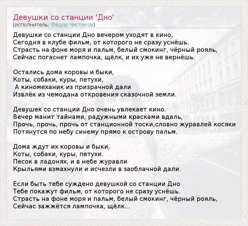 ГлавнаяИсполнителиФёдор ЧистяковДевушки со станции 'Дно'