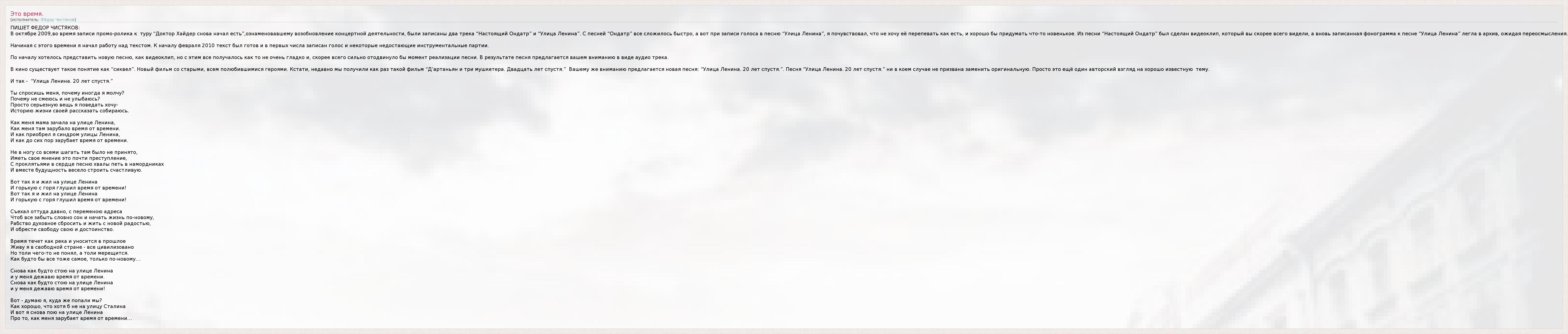 В октябре 2009,во время записи промо-ролика к  туру “Доктор Хайдер снова начал есть”,ознаменовавшему возобновление концертной деятельности, были записаны два трека “Настоящий Ондатр” и “Улица Ленина”. С песней “Ондатр” все сложилось быстро, а вот при записи голоса в песню “Улица Ленина”, я почувствовал, что не хочу её перепевать как есть, и хорошо бы придумать что-то новенькое. Из песни “Настоящий Ондатр” был сделан видеоклип, который вы скорее всего видели, а вновь записанная фонограмма к песне “Улица Ленина” легла в архив, ожидая переосмысления.