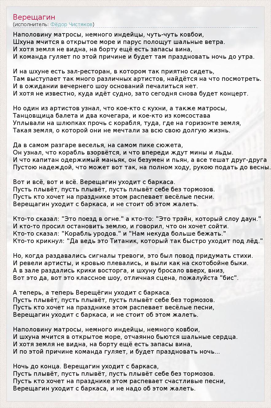 Пусть плывёт, пусть плывёт, пусть плывёт себе без тормозов.