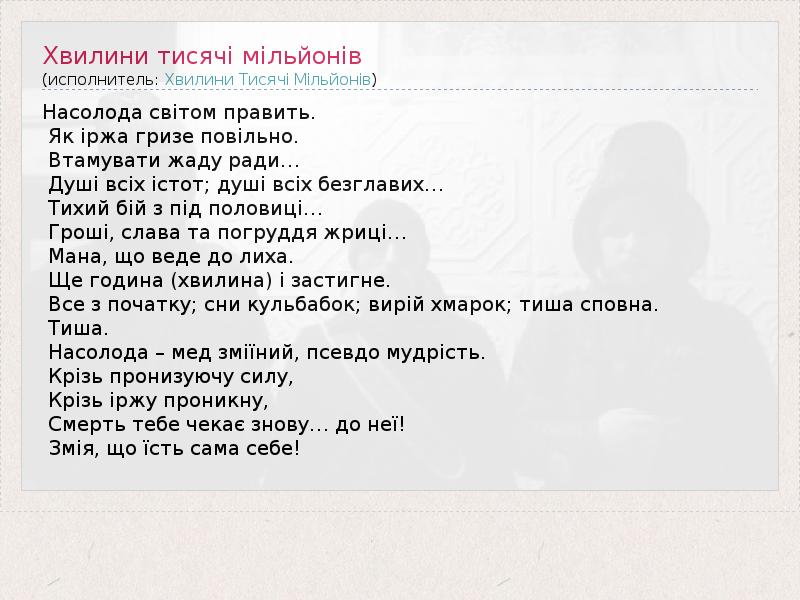 А как ты думаешь, о чем песня "Хвилини тисячі мільйонів" ?