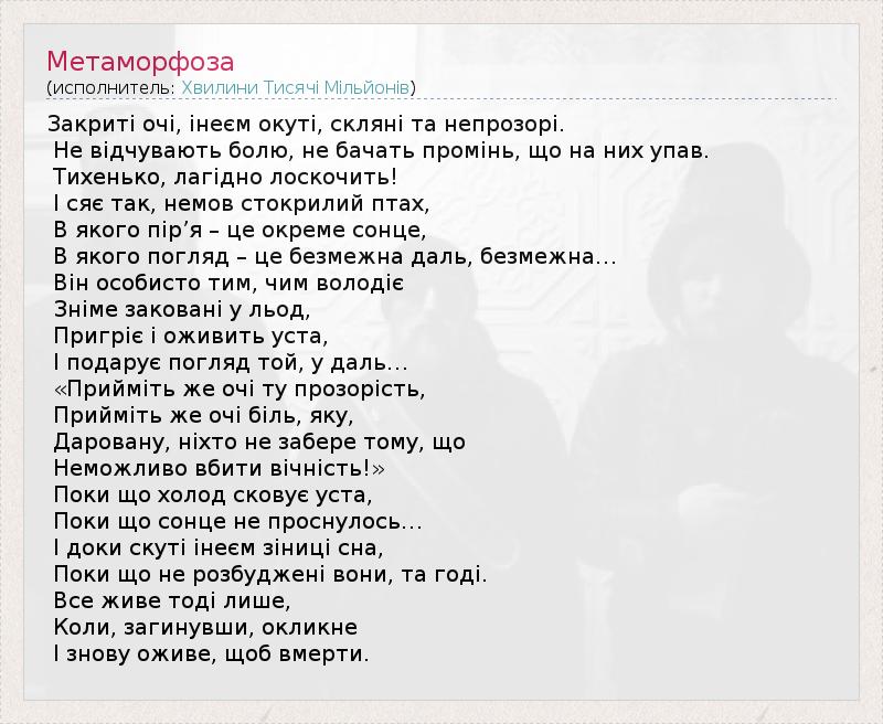 А как ты думаешь, о чем песня "Метаморфоза" ?