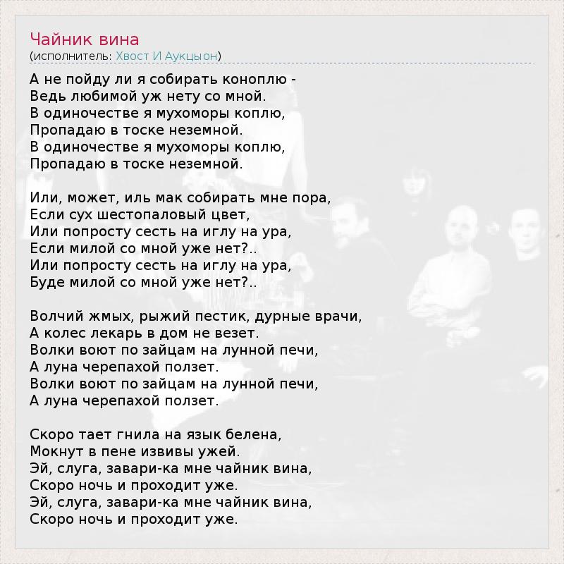 А как ты думаешь, о чем песня "Чайник вина" ?