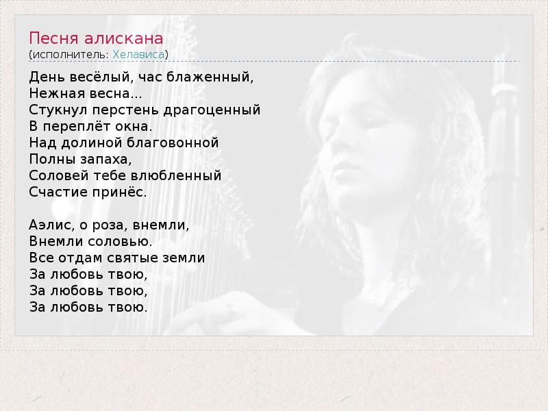 А как ты думаешь, о чем песня "Песня алискана" ?