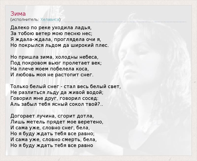 Это интересно:Хелависа (Наталья Андреевна О’Шей — англ. Natalia O'Shea; урожденная Николаева) (р. 3 сентября 1976) — автор песен, музыкант (гитара, ирландская арфа), вокалистка и лидер музыкальных групп: «Мельница» (фолк-рок), «Clann Lir» (традиционный кельтский фолк). Ранее участвовала в проектах «Romanesque» (фолк) и «Тиль... продолжение