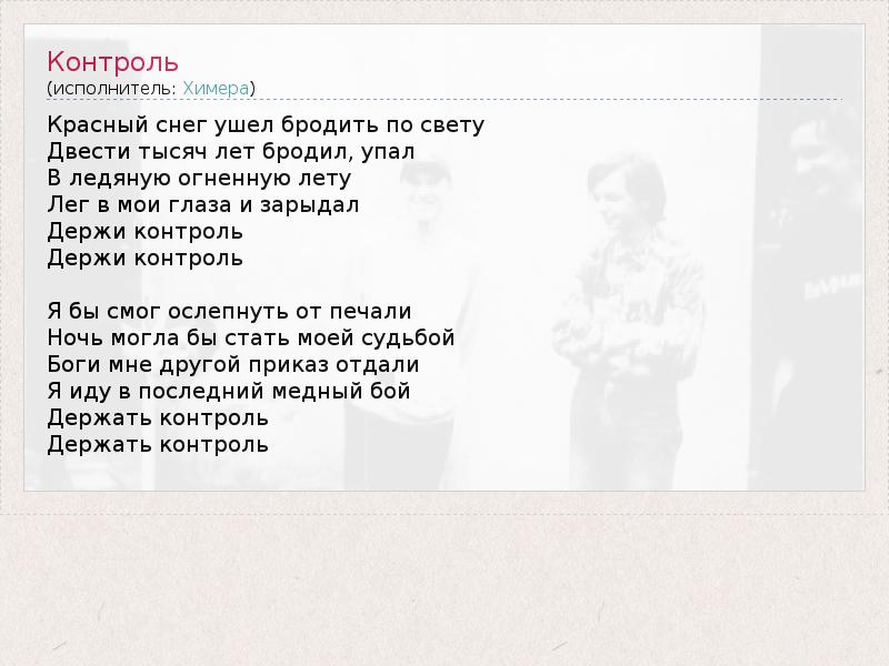 Это интересно:ХимерА (http://www.lastfm.ru/music/ХимерА) – верное название металлической группы. Если текущий исполнитель появляется в твоих чартах, пожалуйста, сделай себе и Last.fm пользу. Исправь теги в своих медиафайлах. Спасибо.=== Биография ===Питерская группа “Химера” начала свое существование как “Депутат балтики”, которую создали осенью 1990 года Эдуард Старков... продолжение