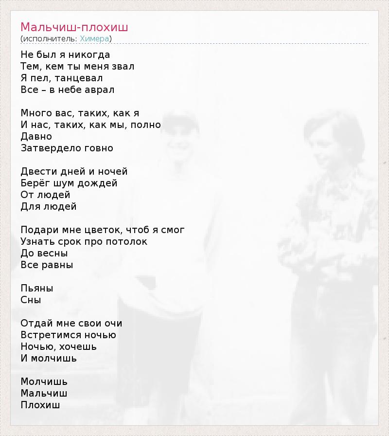 ГлавнаяИсполнителиХимераМальчиш-плохиш